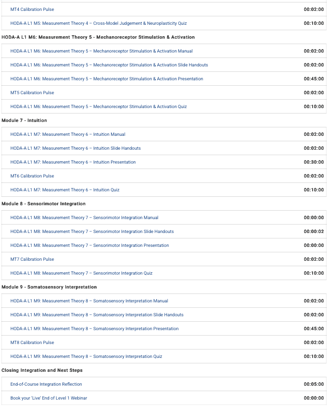 Level 1 introduces the 8 HODA-A Measurement Theories: