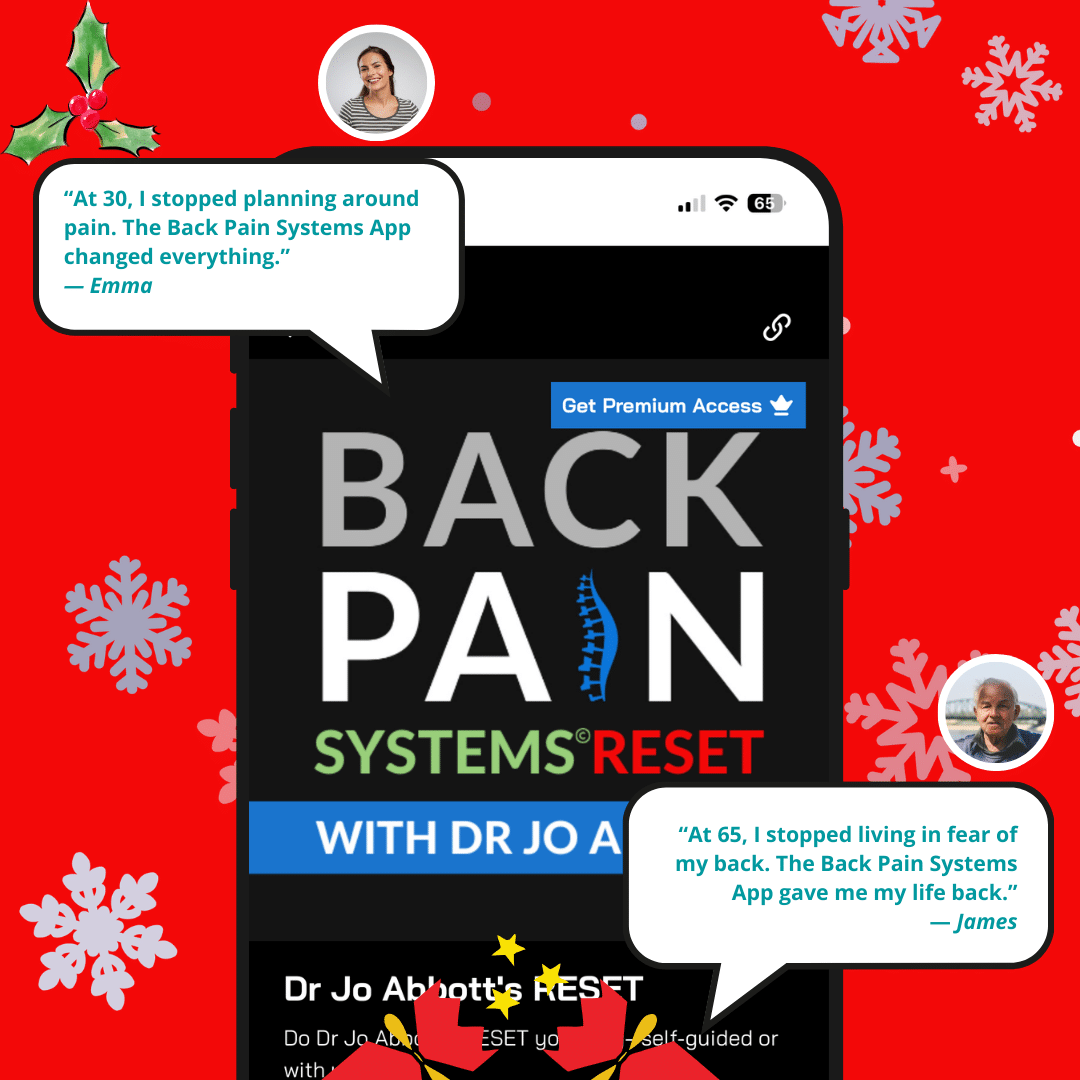 Back Pain Systems App© was created by Dr Jo Abbott — built from 20 years of research, thousands of real-world cases, and a personal journey through persistent back pain.